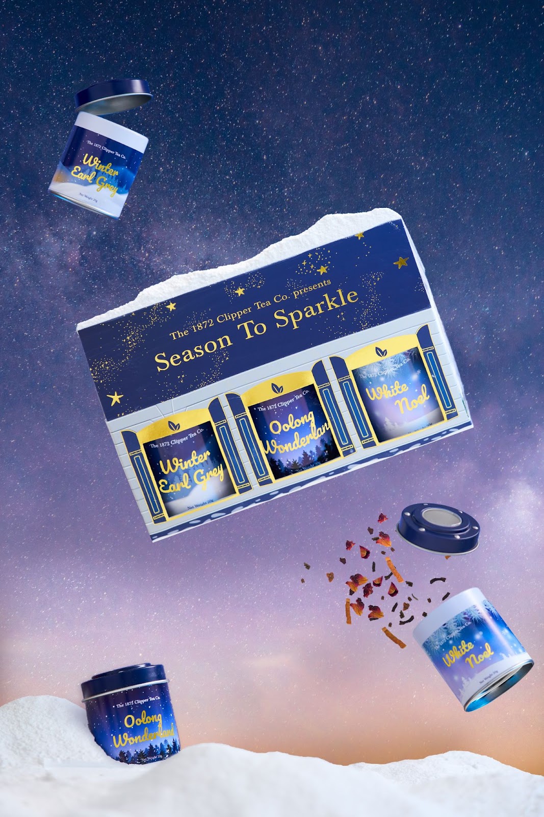 • Excited to sing your hearts out to The First Noel? Brew a cupful of sparkly cheer – White Noel to get into the carolling mood. The wonderfully smooth blend is a magical union of rose petals, pineapple bits, hibiscus blossoms, pomegranate, cream flavouring and edible gold glitter – nothing but sweet, floral and whimsical!